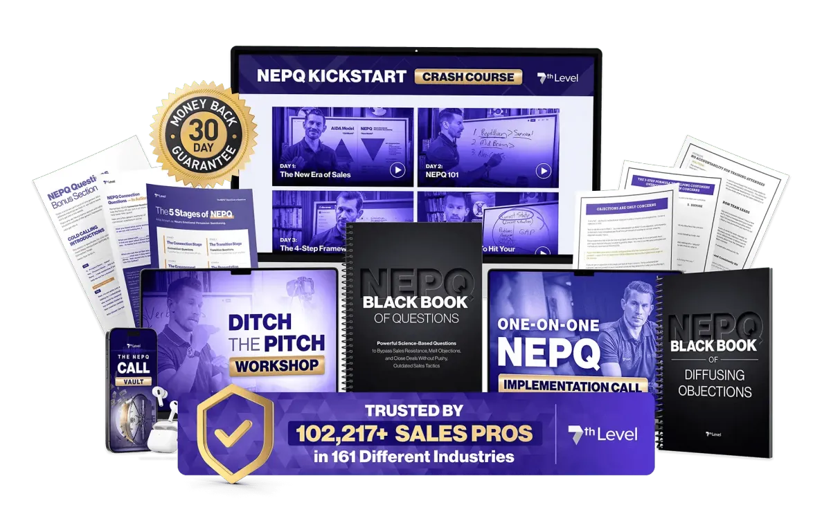 ✅ Bonus #2 - Personalized NEPQ™ Implementation Call (Booked On The Next Page After Your Order): Claim a complimentary call with one of our account managers to identify your biggest sales obstacle, experience a live NEPQ™ role play, and get help with your toughest objection that’s costing you deals right now.